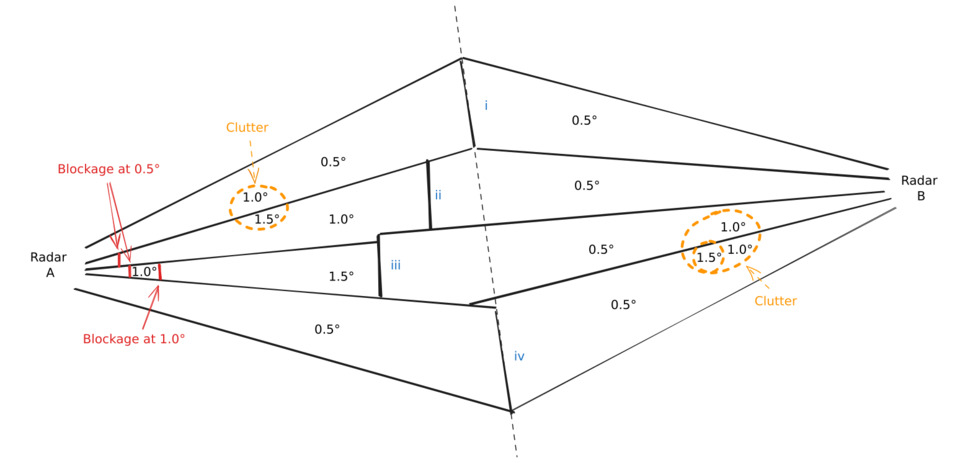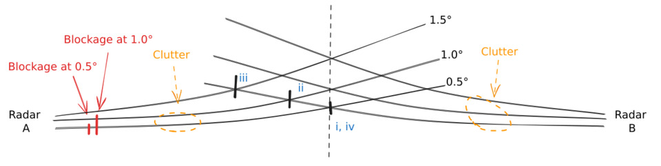 The feature maps can be determined in various ways, either they can be determined statistically with for example hit counters, topography, observations or any other novel approach as long as they give an indication on what to ignore or use. Since radar scans can differ in geometry (nbins/nrays) the feature maps should contain all possible combinations of geometries for the polar volumes since the feature map is located by using nod, elevation angle, nbins, nrays, rscale, rstart and beamwidth.